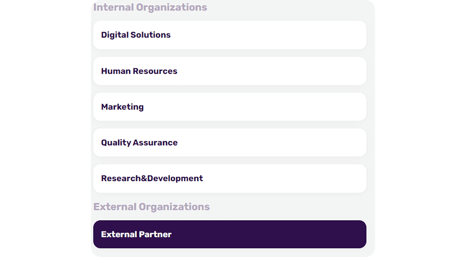 Depending on the goals and objectives of an organization's governance strategy, APIs can be used for both internal and external purposes. In order to accommodate this need, ApiShare provides two distinct types of organizations: internal and external, so that APIs can be shared either only internally, within the company, or with external partners as well.