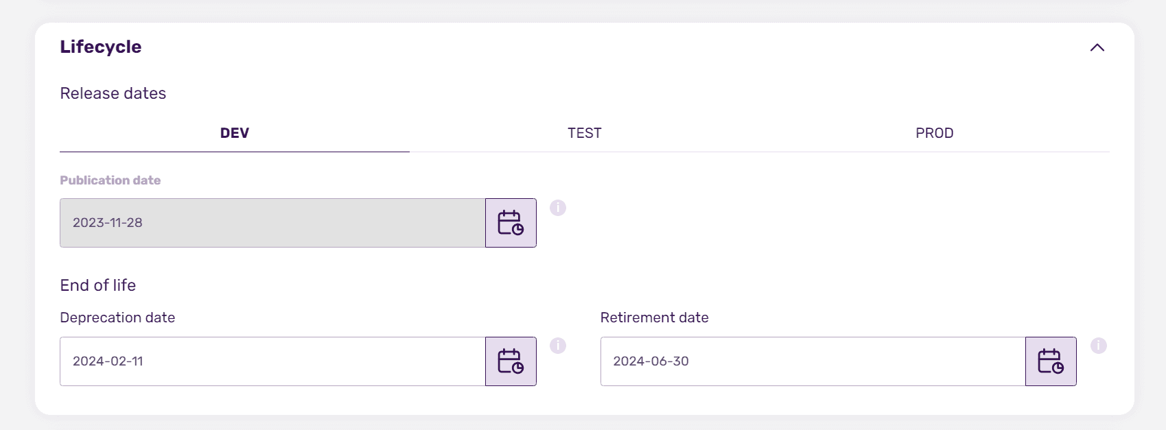 Furthermore, ApiShare invites you to define its API’s contracts before their deployment in any environment. It also allows you to setup expected dates for deployment in each environment, as well as for deprecation and retirement. These dates can guide business owners and developers through the API lifecycle, but they also represent valuable information for consumers, especially considering that all involved stakeholders receive prompt and recurrent notifications about them, minimizing risks.