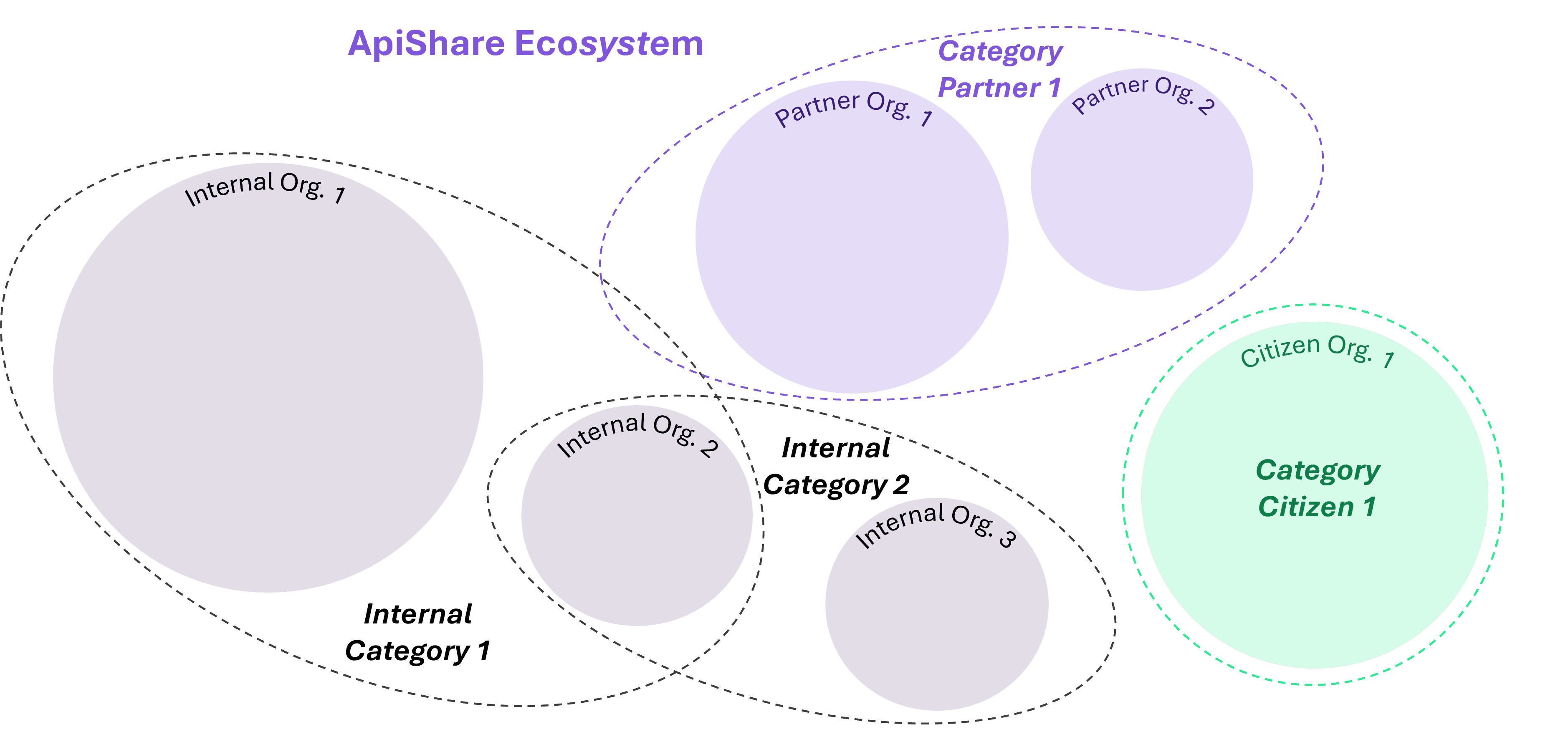 Organizations in ApiShare can be further categorized to model different collaboration scenarios. Categories help administrators: