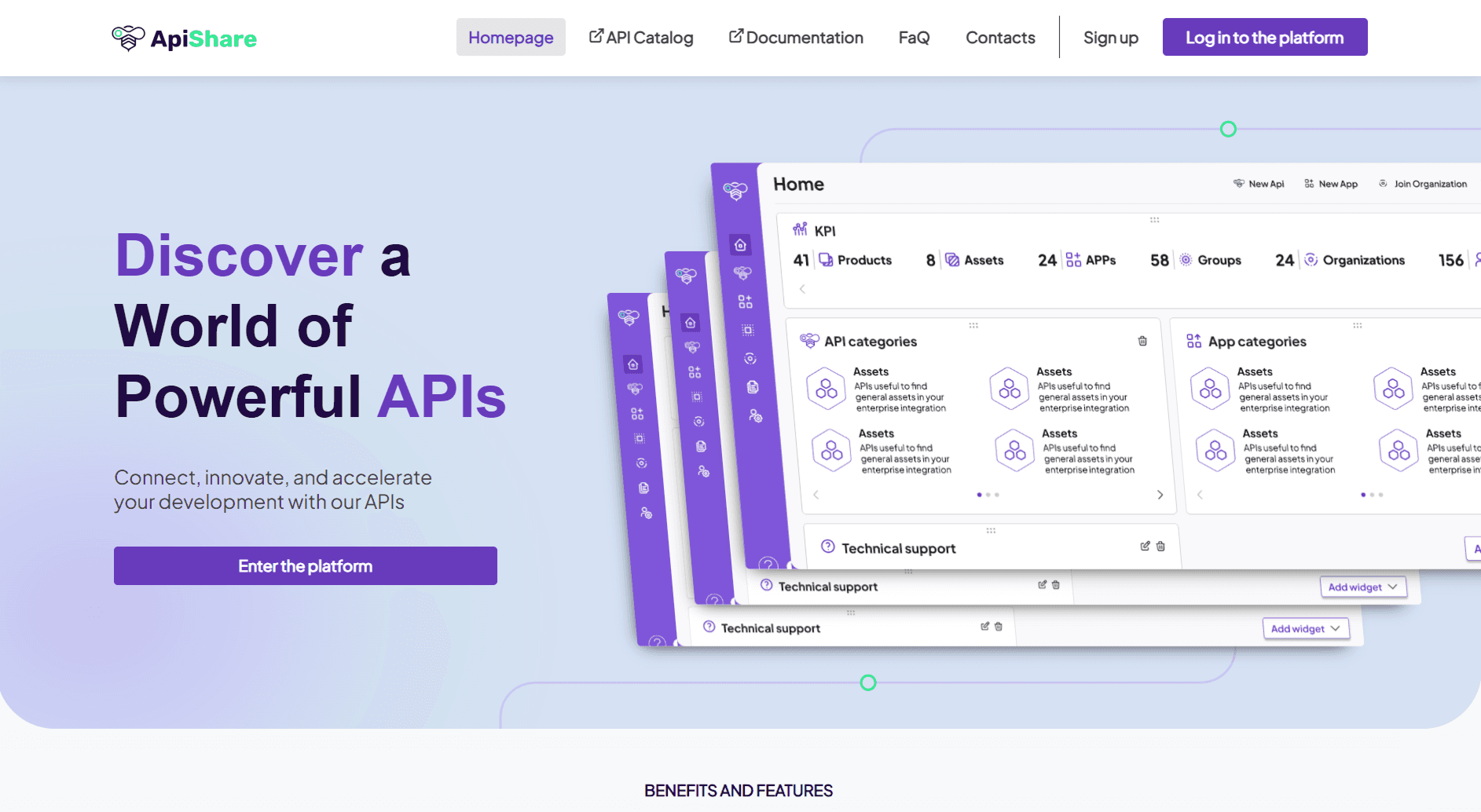 The Showcase also provides quick access to the ApiShare platform itself. From the right-hand side of the navigation bar, visitors can use the Sign Up and Log In buttons to reach the authentication page. After completing the registration process and receiving the necessary permissions, users can begin working directly within ApiShare.