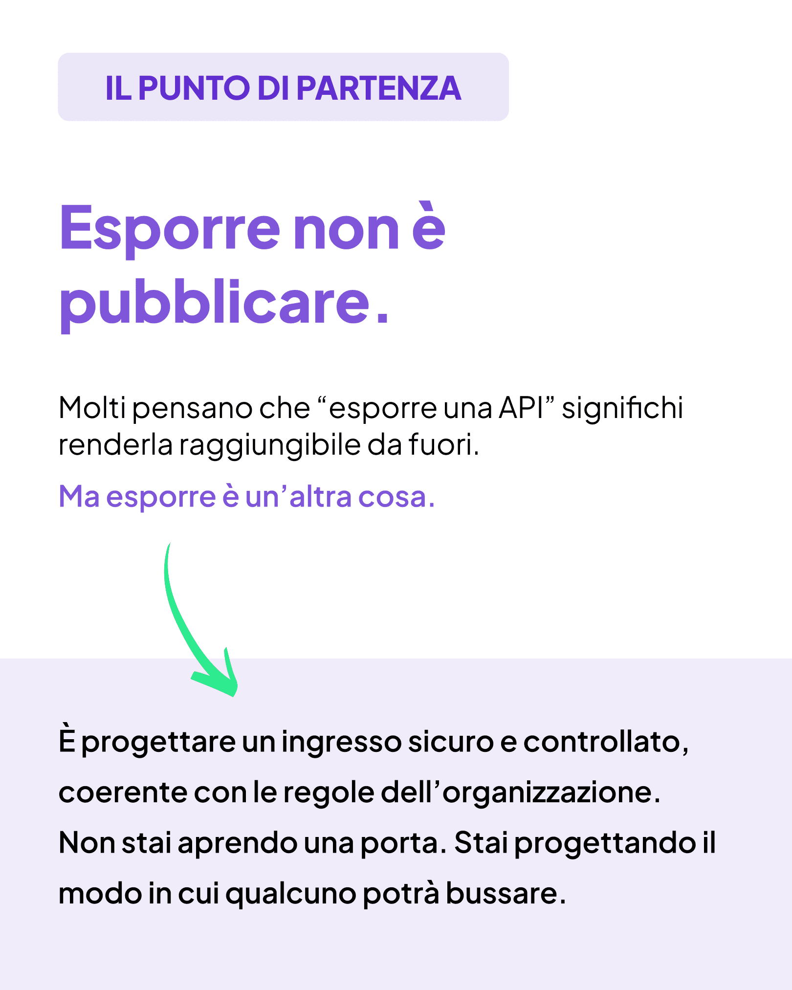 Se lavori con API, integrazioni o microservizi, questa è una di quelle domande che vale la pena guardare da vicino: 𝗰𝗼𝘀𝗮 𝘀𝗶𝗴𝗻𝗶𝗳𝗶𝗰𝗮 𝗱𝗮𝘃𝘃𝗲𝗿𝗼 𝗲𝘀𝗽𝗼𝗿𝗿𝗲 𝘂𝗻𝗮 𝗔𝗣𝗜? 𝗘 𝗰𝗼𝘀𝗮 𝗳𝗮, 𝗱𝗮𝘃𝘃𝗲𝗿𝗼, 𝘂𝗻 𝗔𝗣𝗜 𝗚𝗮𝘁𝗲𝘄𝗮𝘆?